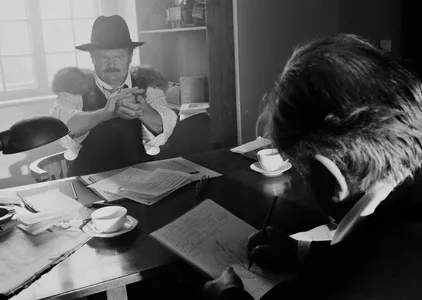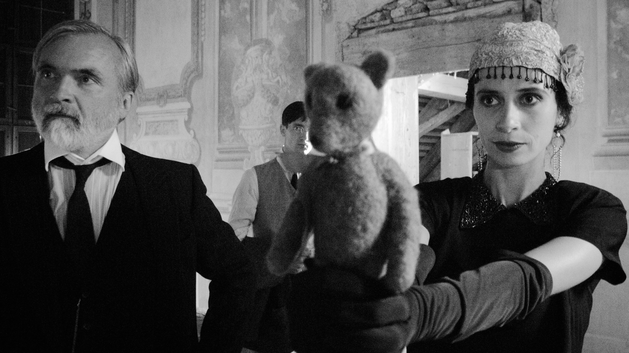 ANGELA SUMMEREDER: Es ging mir in dieser Arbeit nicht unbedingt darum, einzelne Seelenzustände von Menschen zu verdeutlichen. Ich fand es spannend, die Schauspieler mit diesem dokumentarischen Material, mit diesen Sätzen, diesen Atmosphären, dieser Denkweise, diesem Raum und der Aufgabe zu konfrontieren, hier etwas darzustellen und zu entwickeln, was diese Leute bewegt hat. Wir haben die Schwarzweiß-Szenen gleich am Anfang gedreht. Das war sehr herausfordernd, weil gleich am dritten Drehtag etwa vierzig Leute am Set waren. Mit den alten Leuten und den Schauspielern und einem Team, das sich erst kennenlernen musste, drehten gleich am Anfang die schwierigsten und aufwändigsten Sequenzen im Schloss.