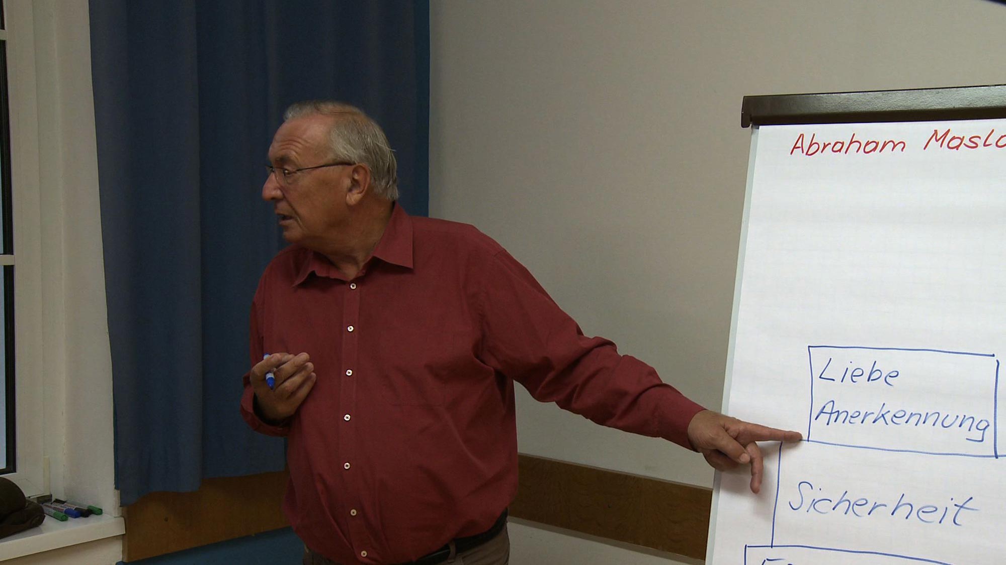 Was für ein Ort ist das Jobcenter? Der erste Blick erfolgt durch die Fensterscheiben, die halb Einsicht gewähren, halb das Außen widerspiegeln – so etabliert Summereder das Jobcenter als ambivalenten Raum. Die Trainerinnen sind nett, sie wollen ja bloß helfen, den Berg zu besteigen. Sie machen keinen Druck, lassen jeden individuell arbeiten, außer man ist ein „Strizzerl“ und will nur „konsumieren“. Sie erledigen zuerst die Formalitäten, damit die Bezüge weiterlaufen. Sie stellen schwierige Fragen in einer merkwüdigen Sprache, etwa: Was haben deine Eltern dir denn vorgelebt? Oder: Was für eine Firma würdest du gründen, wenn du Geld hättest? Dabei machen sie ein gespanntes Gesicht. Sie forden immer wieder auf, Fragen zu stellen, betonen immer wieder die Freiwilligkeit der Teilnahme. Sie sagen: Was perfekt ist, entscheidest du selbst – während die Kamera uns einen Chor von Bildschirmen zeigt, auf denen die Lebensläufe einander gleichen wie ein Ei dem anderen. Der Motivationstrainer im Jobcenter Ried erklärt Maslows Bedürfnispyramide – eine Szene, die Summereder in vier Segmente teilt, die die einzelnen Kapitel verbindet und den Film nach dem Muster einer Progression strukturiert. Der Trainer sagt, der Verlust des Arbeitsplatzes könne die einmalige Chance bedeuten, sein Leben nach den eigenen Begabungen neu zu ordnen – und führt uns damit in das Zentrum des Spannungsfeldes, das die Antipoden Maslow und Sennett gewissermassen beschreiben: Maslows – vielleicht etwas zu idealistische, vielleicht viel zu bürgerliche – Vorstellung, der Mensch strebe nach Anerkennung und schließlich Selbstverwirklichung, hat sich im neuen Kapitalismus verselbständigt. Fleiß oder Meisterschaft in einem Handwerk, so Sennett, seien in den Hintergrund gerückt. Der neue Kapitalismus erfordere Individuen mit Talenten, die Leistungen erbringen und die zugleich imstande sind, sich stetig verändernden Rahmenbedingungen anzupassen. So ist das Bedürfnis nach Anerkennung und Selbstverwirklichung zu einer Maxime geworden und persönliches Glück kann im neuen Kapitalismus nur jenen zuteil werden, die den Anforderungen des Markts genügen.
